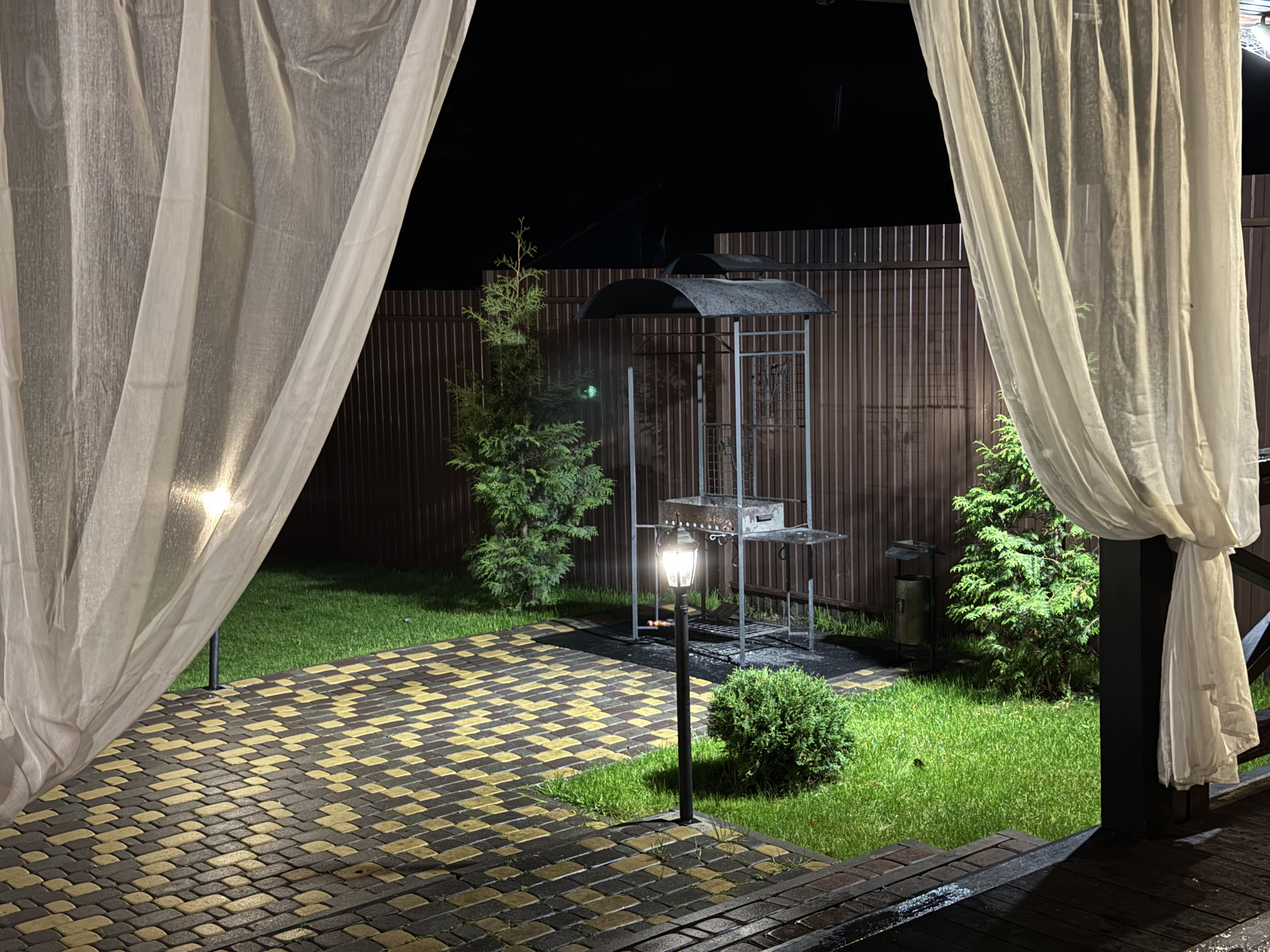 * отдельные благоустроенные дворики с верандой, качелями, мангалом и барбекю